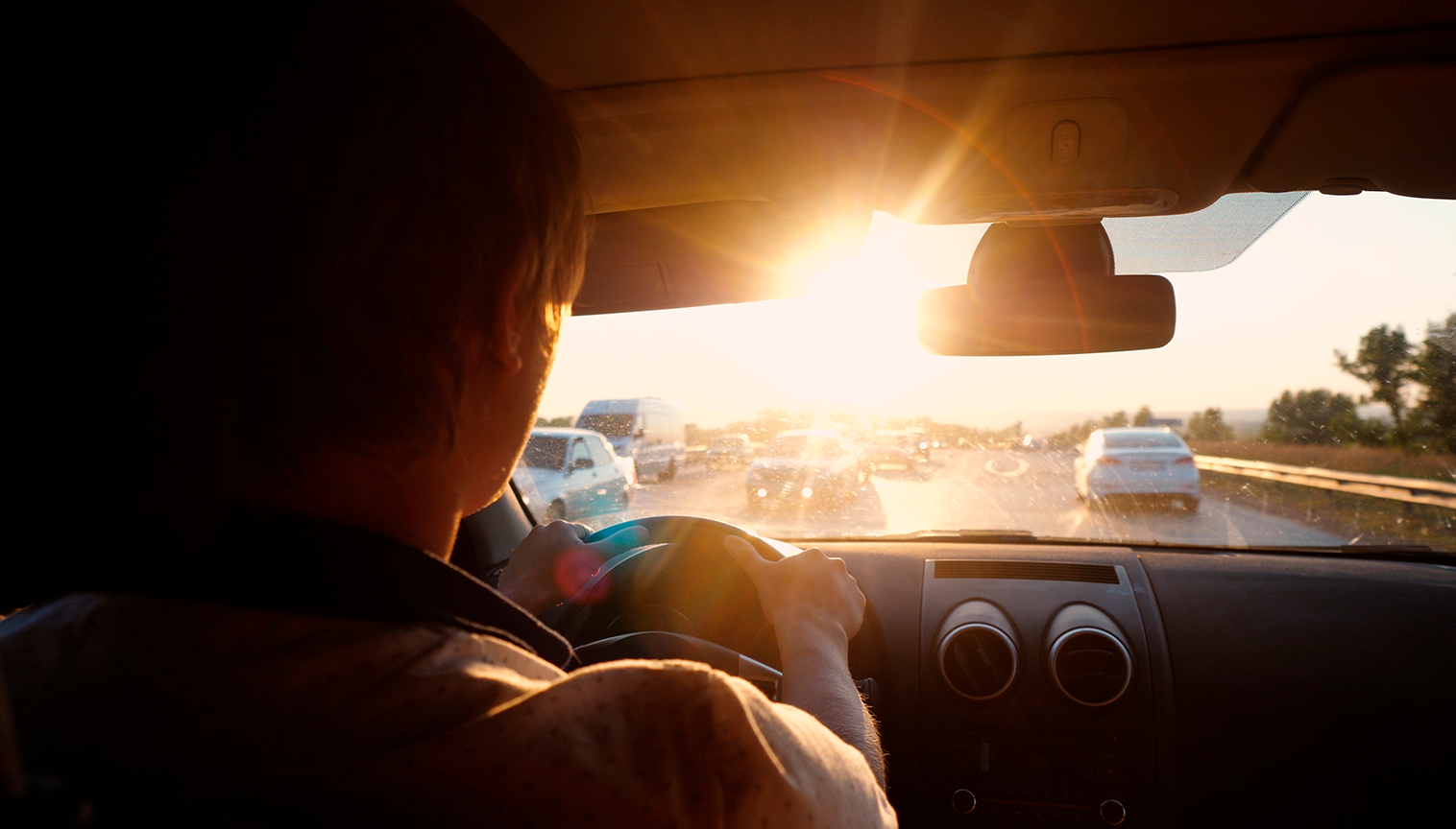 Dirigir sob forte luz solar requer atenção redobrada para a segurança no trânsito